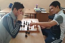 Мәктәптә тәнәфесләрдә укучылар шашка һәм шахмат уйнау белән мәшгуль.