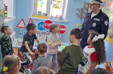 Сегодня в нашем саду инспектор ГИБДД по Тюлячинскому району Каримуллин И. Х. провел беседу с детьми. Он напомнил дорожные знаки,где и как можно ездить на велосипеде. Дети, в свою очередь, задавали инспектору интересующие их вопросы. Встреча была познавательной и интересной для всех.