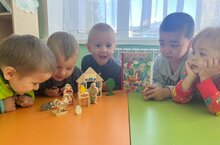 Бүген кечкенәләр төркемендә социаль дөнья белән танышу максатыннан, балалар агачтан эшләнгән предметларның үзлекләре белән таныштылар һәм үзенчәлекле билгеләрне аерып күрсәтергә өйрәнделәр. Шөгыль азагында балалар бик рәхәтләнеп һәм игътибар белән, агачтан эшләнгән атрибутлар ярдәмендә, «Курочка ряба» театрын карадылар һәм тыңладылар Әкият балаларда шатлык һәм уңай хисләр уятты.