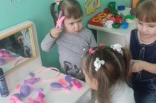 Игра – ведущая деятельность ребенка дошкольного возраста. В игре ребенок может проявлять себя как личность, учится выражать свои эмоции, вырабатывает отношение к окружающему миру. У маленького ребенка все открытия происходит в игре. В нашем Старозюринском детском саду дети очень любят играть в сюжетно-ролевые игры. Для игры имеются все необходимое. В большой и просторной групповой комнате можно одновременно развернуть несколько сюжетно-ролевых игр. Детям очень нравится играть в эти игры, вот одна из них – «Салон красоты – парикмахерская ». Девочки с удовольствием с помощью игрушечных инструментов для парикмахеров делают прически своим подружкам. В игре воспитывается дружеское отношение друг к другу и культурное поведение в общественных местах.