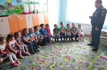 Сегодня, сотрудник Государственного пожарного надзора Тимерханов Л. М. провел очередную проверку пожарной безопасности в детском саду. В конце мероприятия по контролю сотрудник государственного пожарного надзора Тимерханов Л. М. , провел противопожарный инструктаж с педагогическом составом детского сада. Были освоены правила с работой огнетушителя. С детьми были проведены на противопожарные темы: «Что такое пожар?», «Спички детям не игрушки»