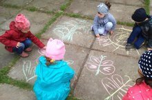 Иске Җөри балалар бакчасында саф һавада кызыклы чаралар уздырыла. Бүген балалар белән асфальтта акбур белән төрле төстәге рәсем ясадылар. Рәсем аша бала үзенең әйләнә-тирәгә карашын һәм мөнәсәбәтен әйтеп бирә ала.Шулай ук рәсем ясау балаларның эстетик, акыл һәм әхлаки яктан үсешенә уңай йогынты ясый. Балалар бик тырышып, салават күпере,чәчәк һәм кояш рәсемнәре ясадылар.