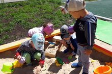 Летом строительство разных построек из песка приносит много счастья и радости ребятам. Дети младших групп особенно любят лепить в песочнице. У детей развивается конструктивное мышление . Создавая разные постройки ребенок имеет возможность через постройку выразить свои фантазии и воплотить их в реальность.