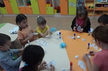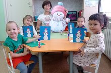 Сегодня с детьми младшей группы с воспитателем Галиулиной А.Н. провели интересное занятие .К детям в гости пришел грустный снеговик . А почему он был грустный? Да потому что он один ! И ему так грустно одному. И мы с ребятами решили помочь ему! Сделать снеговику друзей. Веселых снеговиков!