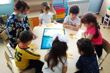 Бүген, 7 апрель көнне Иске Җөри авылы китапханәчесе Гильмутдинова Р. Ш.безнең коллективны кунакка чакырды һәм бакчабыз педагогы Галиуллина А. Н. белән берлектә мәктәпкәчә яшьтәге балалар белән танып-белү әңгәмәсе үткәрде, бергәләп татар халкының гореф-гадәтләре һәм борынгы әйберләрнең билгеләнеше турында сөйләделәр, балалар белән бергә әбиләребезнең осталыгына сокландылар. Аннан соң, балалар зур теләк белән"Түбәтәй" татар милли уенында катнаштылар. Балалар бик канәгать калдылар.