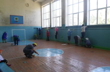 А сегодня все сотрудники школы заняты покраской спортивного зала. Остается небольшой объем работ, и мы надеемся, что во время приемки школа будет выглядеть достойно.