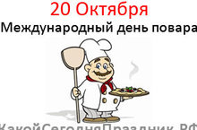 20 октября — День повара. Каждый год 20 октября свой профессиональный праздник — День повара — отмечают повара и кулинары всего мира. Именно эту дату в качестве праздника учредили в 2004 году по инициативе Всемирной ассоциации кулинарных сообществ. В этой организации состоит более 8 миллионов представителей поварской профессии из разных стран. Потому, как и в других профессиях, у кулинаров появился свой профессиональный праздник Всемирный день повара.