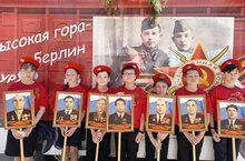 Юнармейский отряд "Сокол" принял участие в районном параде, посвященном Дню Победы. Они в составе бессмертного полка несли портреты ветеранов Великой Отечественной войны.