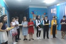 Праздничное мероприятие прошло в форме состязания двух команд: учителей и учеников в весёлых конкурсах. И, конечно же, художественные номера и поздравления для любимых учителей.