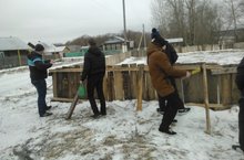Учащиеся старших классов общими силами дружно установили коробки катка.