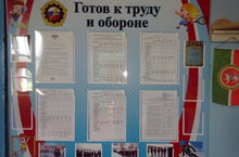 С 15 по 18 мая в школе был оформлен информационный уголок ГТО. В уголке были размещены фотографии,нормативы и информации направленные на пропаганду Всероссийского физкультурно-спортивного комплекса «Готов к труду и обороне» (ГТО).