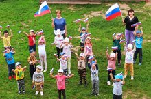 Накануне Дня России в нашем детском саду прошел праздник, посвященный этому событию. Ребята читали стихи, пели песни, танцевали, играли в подвижные и музыкальные игры, соревновались, побеждая во славу России.Целью всех мероприятий, проходивших в детском саду, было формирование у детей представлений о России как о государстве, о родной стране; воспитание чувства любви к родному краю, Родине./ Бүген бакчабызда Рәсәй көненә багышланган чаралар оештырылды.