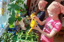 Дети любят ухаживать, поливать растения в группе детского сада, протирать крупные растения влажной тряпочкой, рыхлить почву и опрыскивать листья. Такие элементарные трудовые поручения воспитывают интерес к комнатным растениям и желание ухаживать за ними.Так, педагоги начинают обучение детей простейшим навыкам ухода за комнатными растениями: поливать, рыхлить и опрыскивать, проводя ряд занятий познавательного характера и в целях воспитательной работы, направленной на привитие любви, заботы и гуманного отношения к природе.