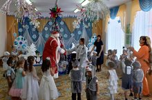Каждый год в конце декабря для воспитанников всех возрастных групп в нашем детском саду организуются праздничные новогодние утренники. Красиво украшенный зал, нарядная елка, великолепные костюмы, подарки, Дед Мороз, Снегурочка и множество других сказочных персонажей ожидали детей детского сада.Дошколята младшей группы окунулись в сказочный мир, где их встретили Снегурочка с Дедом Морозом и Снеговиком. Радостной и незабываемой для детей была встреча со сверкающей огнями елочкой. / Кечкенәләр тйркемендә "Чыршы бәйрәме" утте. Балалар Кыш бабай белән Кар кызына матур биюләрен, җырларын бүләк иттеләр.