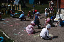 Дети любят рисовать не только на бумаге, но и на асфальте. Вот и сегодня дети рисовали цветными мелками. Рисунки получились яркими, красочными. Все остались довольны своей работой.