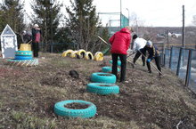 Язгы өмә. 18.04.2015 Бүген бакча хезмәткәрләре язгы өмәгә чыгып, бакча территориясен, уен мәйданчыкларын чүп - чардан арындырдылар.