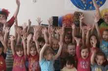 В представление с клоунами принимали участие воспитанники детского сада всех групп. Дети пели, танцевали и играли вместе с артистами. Было очень весело!