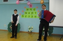 7 нче март көнне мәктәбебездә егетләрдән генә торган концерт уздырылды. Алар барлык хатын-кыз укытучыларны, укучы кызларны котлап һәр класстан чыгышлар ясадылар, Концерт ахырында Нотфуллин Салават искиткеч матур итеп гармунда үзе уйнап җырлавы барыбызны таң калдырды. Кабат-кабат сәхнәгә чакырып, рәхмәтләребезне җиткердек. Безнең Салават киләчәчәктә дә шул сәләтен югалтмыйча, зур сәхнәләргә күтәрелсен иде, Уңышлар телик аңа! 07.03.2014