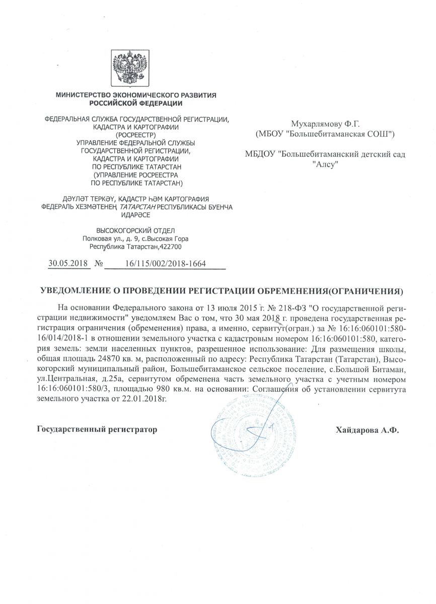 - Постановление Исполнительного комитета Высокогорского муниципального района Республики Татарстан № 477 от 18.06.2020 года "Об изменении вида муниципального бюджетного общеобразовательного учреждения "Большебитаманская средняя общеобразовательная школа Высокогорского муниципального района Республики Татарстан"