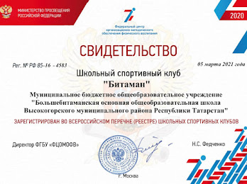 муниципальное бюджетное общеобразовательное учреждение «Большебитаманская основная общеобразовательная школа Высокогорского муниципального района Республики Татарстан»