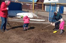 Балалар бакчасында өмә булып узды. Өмәнең максаты-безнең балалар бакчасын чистарак, төзекләндереп, ямьлерәк итү.