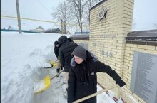 Трудовой десант юнармейцев у мемориала памятника павшим героям односельчанам в ВОВ. 20.02.2026