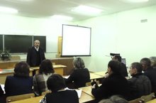 Сегодня в г.Зеденодольске прошел семинар учителей математики по подготовке обучающихся к ОГЭ и ЕГЭ. На встречу с учителями математики приехал кандидат педагогических наук,автор пособий по подготовке к ЕГЭ по математике, заведующий лабораторией математики Московского института открытого образования Семенов Андрей Викторович. Он ознакомил учителей с изменениями в структуре экзамена,сошибками учащихся прошлого учебного года. Встреча была интересной. Из нашей школы в семинаре участвовала учительница математики Забирова Дайма Мухтаровна.