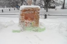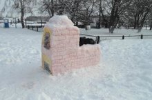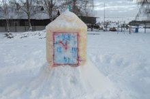 7нче сыйныф укучылары кардан мич ясап, мич башына Емельяның үзен менгереп яткырдылар