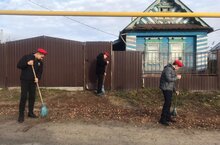 В рамках "Осенней недели добра" учащиеся помогают пожилым в уборке территории.