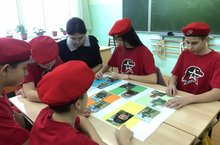 Юнармейцы делают стенд "Наши земляки - участники СВО на Украине"./ Яшь армиячеләр "Украинадагы МХО дә катнашучы безнең якташларыбыз "стенды ясыйлар. 26.01.2023