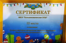 Наша школа заняла 3 место в номинации "Лучщее Новогоднее оформление школьных территорий"./Безнең мәктәп "Мәктәп тирәлеген Яңа елга иң яхшы бизәү" номинциясендә 3 нче урын яулады.