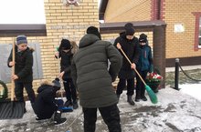 Сегодня День неизвестного солдата. Наши учащиеся убирали снег из площадки возле памятника погибшим в ВОВ.