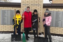 Учащиеся убирали снег вокруг памятника "Павшим в боях в ВОВ"./ Укучылар Бөек Ватан сугышында һаләк булган авылдашларга куелган һәйкәл янын кардан чистарттылар. 01.12.2020