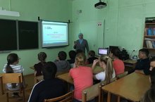 "Игътибар-балалар" акциясе дәвам итә. Башлангыч сыйныфлар укытучысы Нәҗемединова Л.А. укучылар белән "Велосипедта йөрү кагыйдәләре" темасына әңгәмә үткәрде һәм буклетлар өләште.