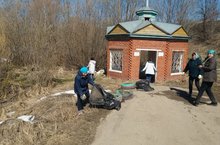 Мы обеспечиваем чистоту и порядок на территории родника "Калима"./ "Кәлимә" чишмәсе тирәлегендә чисталык һәм тәртипне тәэмин итәбез. 20.04.2019
