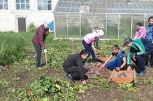 Бәрәңге үстергән участокны укучылар чистартып, чүп-чарын җыеп түктеләр. 18.09.2017