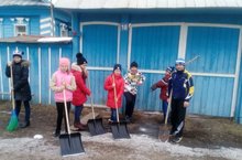Безнең мәктәп укучылары Бөек Ватан сугышы ветераны Зиганшин Әгзам абыйга әйләнә тирәсен чүп-чардан арындырырга ярдәм итәләр.