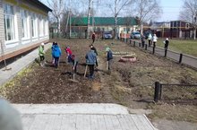 Башлангыч сыйныф укучылары һәм укытучылары зур тырышлык белән мәктәп алдын җыештырдылар.
