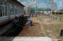 Яшелчә,чәчәк утырту өчен башта түтәлләр казырга кирәк. Укучыларыбыз бу эшнең никадәр әһәмиятле икәнен аңлыйлар, бик тырышып эшлиләр.