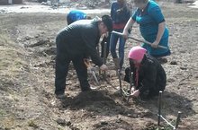 Укытучылар мәктәп бакчасына карлыган утырттылар. 27.04.2017