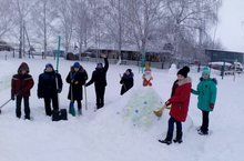 Яңа елны каршы алырга дип, мәктәп ишек алдын бизәр өчен, кардан ясалган сыннарны укучылар яңа яуган кардан чистартып торалар.Бу эш укучыларга эстетик тәрбия дә, хезмәт тәрбиясе дз.