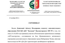 23 октября педагог объединения "Кройка и шитье" - Денисова Айсылу Ильдаровна приняла участие в региональном практическом семинаре "АРТ-мастерство" , состоявшемся на базе мунципального автономного учреждения дополнительного образования города Набережные Челны "Детская школа искусств №6 "ДА-ДА"