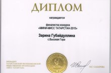16 мая в Татарской Государственной филармонии им. Г.Тукая прошел финал Республиканского детского конкурса красоты и талантов " Мини-Мисс Татарстан 2015" . В финале приняли участие 33 конкурсантки, одной из которых стала наша Губайдуллина Зарина. Мы поздравляем юную финалистку конкурса, достойно представившую Высокогорский район.