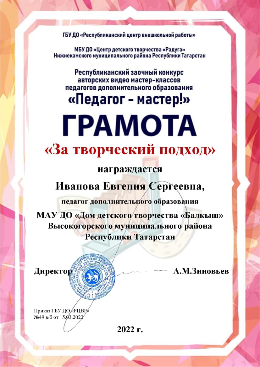 Муниципальное автономное образовательное учреждение дополнительного образования Дом детского творчества «Балкыш» Высокогорского муниципального района РТ