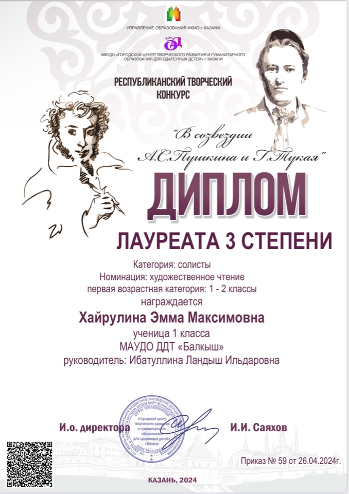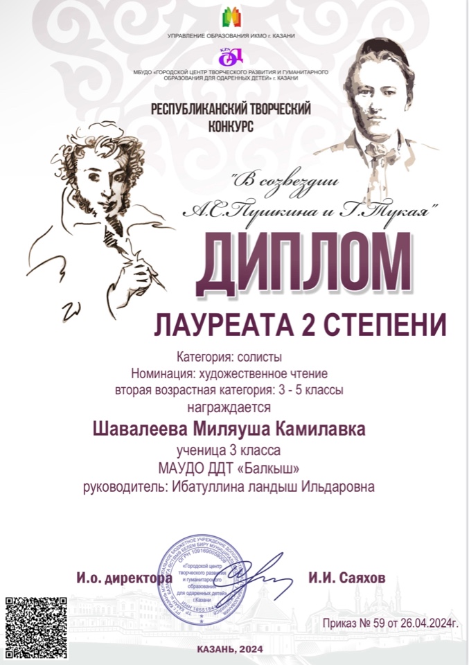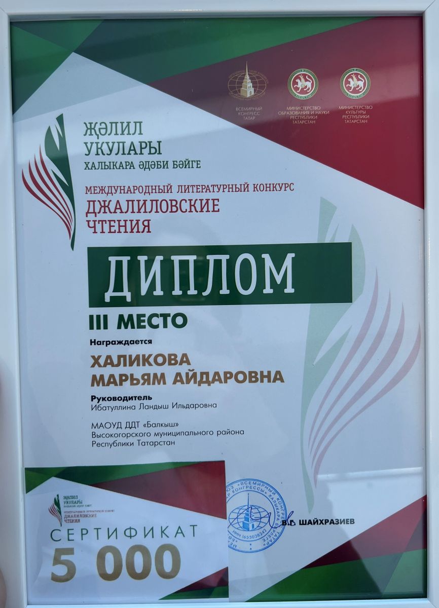 Международный литературный конкурс "Джалиловские чтения" -Халикова Марьям,3 место