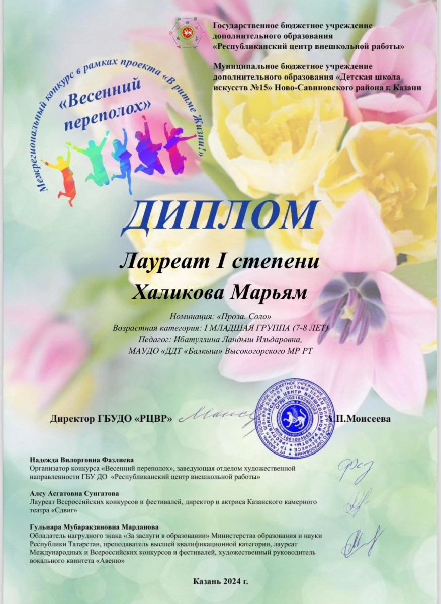 Межрегиональный конкурс "Весенний переполох" - Халикова Марьям, лауреат 1 степени