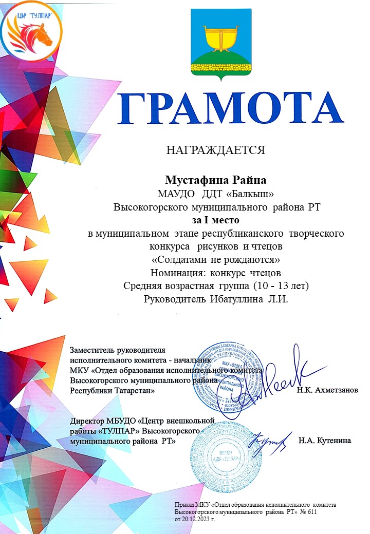 Муниципальный этап Республиканского конкурса рисунков и чтецов "Солдатами не рождаются" - Мустафина Райана, 1 место