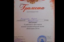 Поздравляем Валиуллину Инзилю, Калинину Кристину учениц 7 класса, дипломантов II -районного фестиваля военно-патриотической песни "Виктория-2014" 26.02.2014