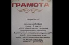 Поздравляем Ахметшина Нурфата призёра муниципального тура всероссийской олимпиады школьников по английскому языку 24.05.2014