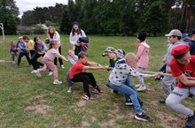 Пятый день лагеря запомнился веселыми подвижными играми. А еще дети посетили страусиную ферму!